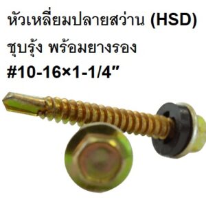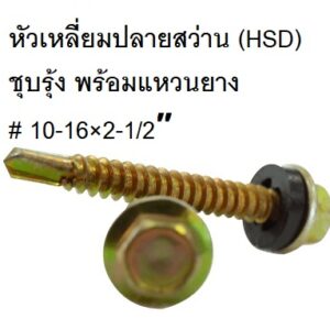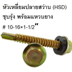 สกรูหัวเหลี่ยมปลายสว่าน (HSD) ชุบรุ้ง พร้อมแหวนยาง # 10-16×1″