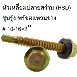 สกรูหัวเหลี่ยมปลายสว่าน (HSD) ชุบรุ้ง พร้อมแหวนยาง # 10-16×2″