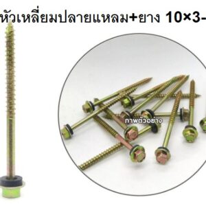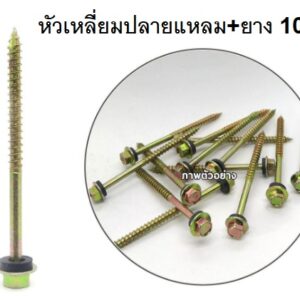 สกรูหัวเหลี่ยมปลายแหลม+ยาง 10×3″