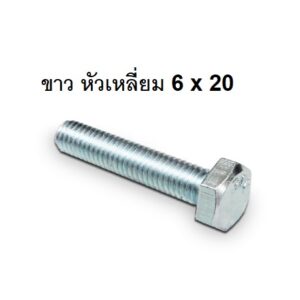 สกรู มิลขาว หัวเหลี่ยม 6 x 20