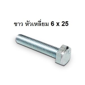 สกรู มิลขาว หัวเหลี่ยม 6 x 25