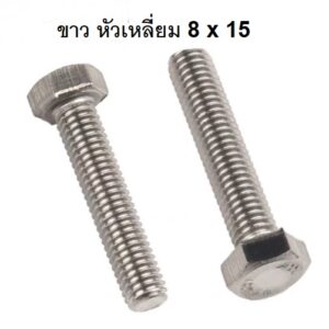 สกรู มิลขาว หัวเหลี่ยม 8 x 15