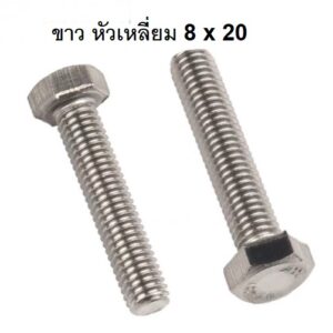 สกรู มิลขาว หัวเหลี่ยม 8 x 20