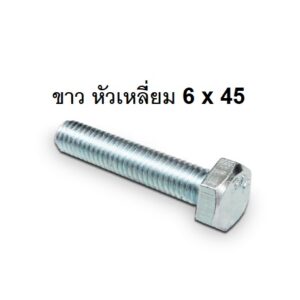 สกรู มิลขาว หัวเหลี่ยม 6 x 45