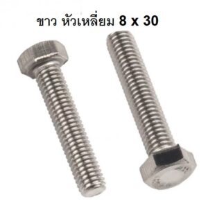 สกรู มิลขาว หัวเหลี่ยม 8 x 30