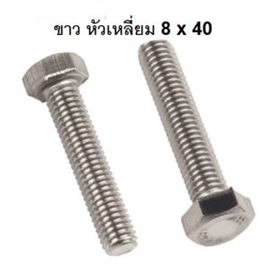 สกรู มิลขาว หัวเหลี่ยม 8 x 40