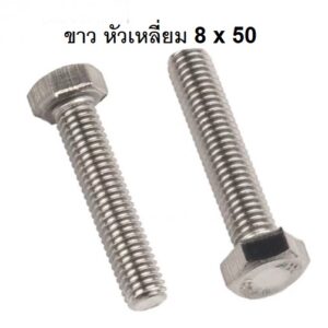 สกรู มิลขาว หัวเหลี่ยม 8 x 50