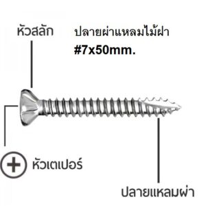 สกรูปลายผ่าแหลมไม้ฝา 7x50mm.