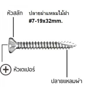 สกรูปลายผ่าแหลมไม้ฝา #7-19x32mm.