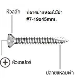 สกรูปลายผ่าแหลมไม้ฝา #7-19x45mm.